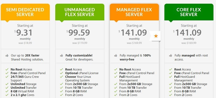 على سبيل المثال ، يبدأ المستوى 1 Premium VPS بسعر 13.50 دولارًا فقط شهريًا (لذاكرة وصول عشوائي (RAM) سعة 1 جيجابايت ، ومساحة قرص 50 جيجابايت ، وعمليات نقل بيانات شهرية غير محدودة ، وبريد إلكتروني غير محدود) ، بينما يصل المستوى 10 إلى 105 دولارات شهريًا (لذاكرة وصول عشوائي (RAM) سعة 15 جيجابايت ، و 200 جيجابايت) من مساحة القرص ، وعمليات نقل بيانات شهرية غير محدودة ، وبريد إلكتروني غير محدود). تبدأ خطة SSD Linux بـ 13.50 دولارًا شهريًا (لذاكرة وصول عشوائي (RAM) سعة 1 جيجابايت ، و 25 جيجابايت من مساحة القرص ، وعمليات نقل بيانات شهرية غير محدودة ، وبريد إلكتروني غير محدود) ويصل الحد الأقصى إلى 129 دولارًا في الشهر. لذلك ، تحصل على 18.5 جيجابايت من ذاكرة الوصول العشوائي ، و 130 جيجابايت من مساحة القرص ، وعمليات نقل بيانات شهرية غير محدودة ، وبريد إلكتروني غير محدود.